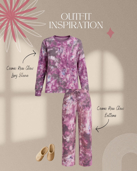 Move to your own beat with the Cosmic Rose Glow Bottoms! Their vibrant purple tie-dye pattern brings fun energy, while the relaxed fit ensures comfort all day long. With an elastic waistband, drawstring, and handy pockets, they’re as practical as they are playful. Don’t forget the matching top to finish your stylish vibe!