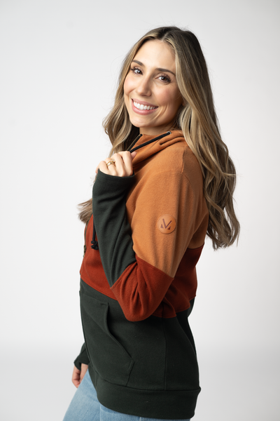 Be bold and make a statement this fall with our Colorblock Fullzip Hoodie! Featuring a trendy colorblock with camel, rust, and hunter green! This hoodie is perfect for the risk-taker who loves to stand out. Made with stretchy fabric for ultimate comfort, this hoodie will keep you looking stylish and feeling confident all season long.