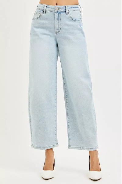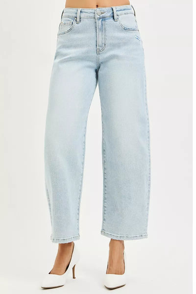 The High Rise Crop Barrel Jeans feature a flattering high-rise waist and a cropped length for a chic and modern look. The barrel fit provides a unique silhouette that is both stylish and comfortable. Made from quality denim, these jeans are durable and versatile for any occasion. Pair them with your favorite tops and shoes for a trendy outfit. Elevate your style with the fashionable High Rise Crop Barrel Jeans for a sophisticated and on-trend ensemble.