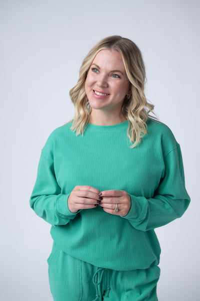 Corrine Ribbed Pullover Top - Emerald by Michelle Mae