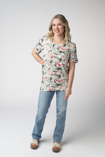 The Sophie Tee is the ultimate wardrobe essential. This versatile tee features a classic V-neckline and cuffed sleeves for a touch of casual elegance. Made from buttery soft, high-stretch fabric, it's perfect for layering or wearing on its own. This tee is sure to become your go-to piece for effortless style.