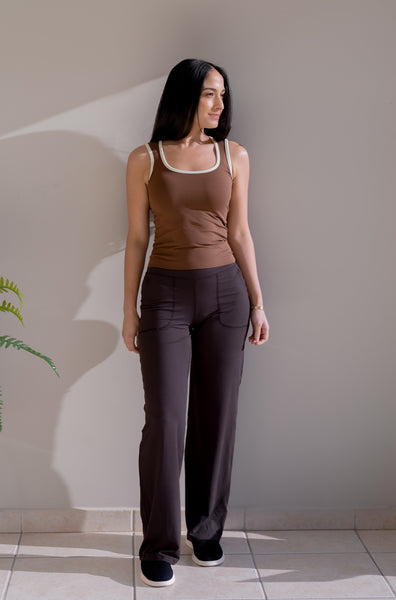 Rock the Brownstone Oasis Tank and watch your everyday style transform. Choose between a flattering U-neck or scoop neckline—both dressed up with punchy contrast binding that steals the show. This two-tone wonder layers like a dream over your basics or goes solo when the heat's on. Soft, adaptable, and bursting with character, it's the tank that turns your casual rotation from "meh" to "yes, please."