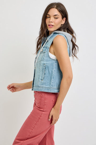 Risen Denim Vest with Detachable Hood