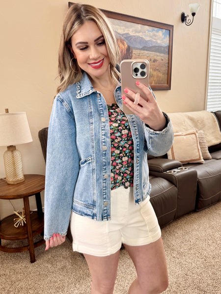 The navy floral print makes it easy to dress up or down — pair it with your favorite denim for a casual day out or style it with white pants or a skirt for a more polished look.