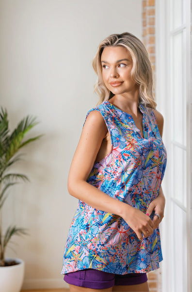 Escape to paradise with our Island Escape Tank! Featuring a vibrant a-line bodice with a split neckline and mandarin collar, this tank offers a breezy and relaxed fit perfect for those warm days. Plus, it's non-sheer, stretchy, and wrinkle-free for easy wear and maintenance. No more fuss, just pure island vibes!