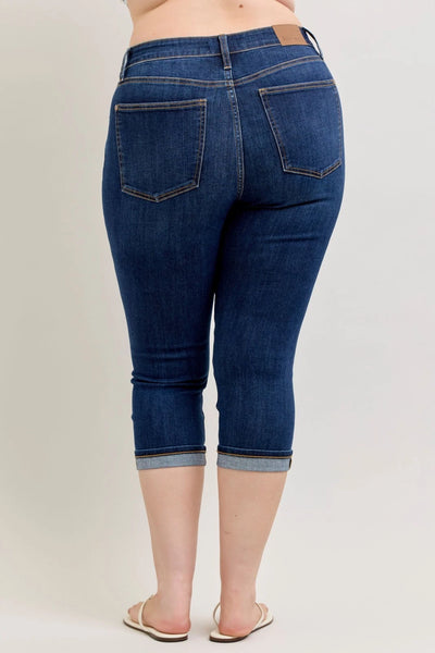 These Judy Blue capris are your new go-to for effortless style. The rich dark wash pairs seamlessly with everything in your closet—from casual tees to dressy tops. Cut at the perfect cropped length, they're ideal for warm weather without sacrificing that polished look. Comfortable enough for all-day wear, versatile enough for any occasion. Grab yours and get ready to turn heads!