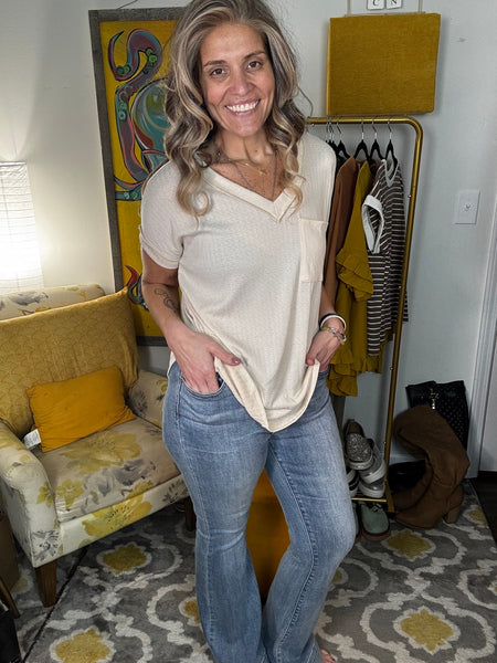 Meet your new wardrobe essential—the Something Simple Tee. This lightweight wonder features a flattering v-neck and a handy front pocket, making it the perfect grab-and-go piece for any occasion. Breathable and breezy, it's designed to keep you comfortable without any fuss. Whether you're dressing it up or keeping it casual, this tee does the heavy lifting so you don't have to.