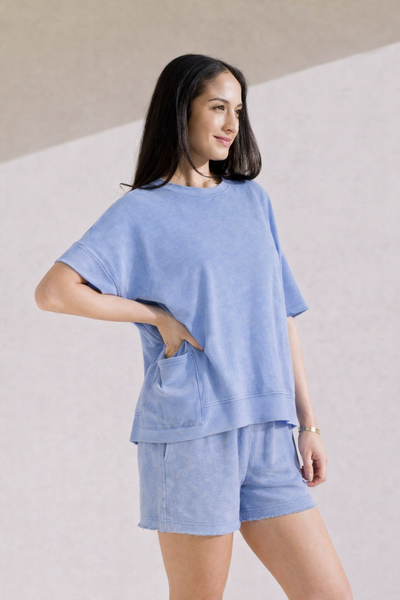The Harbor Mist Short Set is your ticket to looking effortlessly cool while doing absolutely nothing. This mineral-washed knit duo features raw-edge details and breathable, buttery-soft fabric that works for couch days and coffee runs alike. Proof that comfort and style can be best friends.